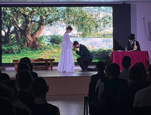 Инсценировка эпизодов из "Метели" заворожила своей проникновенностью, воссоздавая атмосферу загадочности и романтизма. Актеры мастерски передавали эмоции и чувства героев, заставляя зрителей сопереживать их судьбам. Легкость и игривость комедии "Барышня-крестьянка" внесла нотки юмора и беззаботности. Также программу украсил показ отрывка из фильма о попе и работнике его Балде. Этот эпизод в юмористической форме напомнил о народных мотивах, присущих произведениям Пушкина, и вызвал искренний смех в зале.