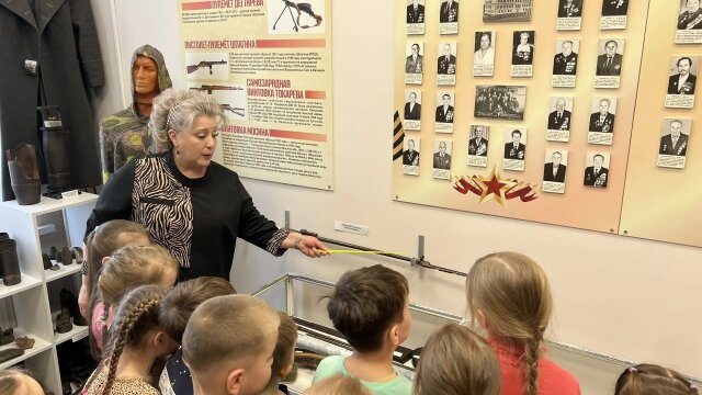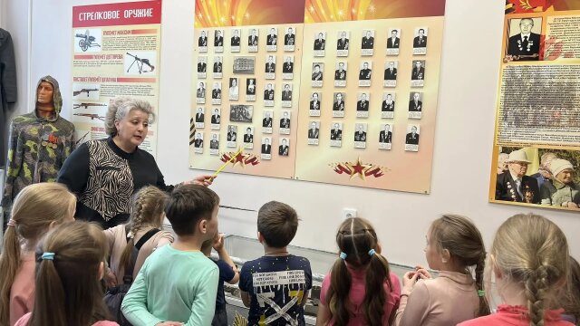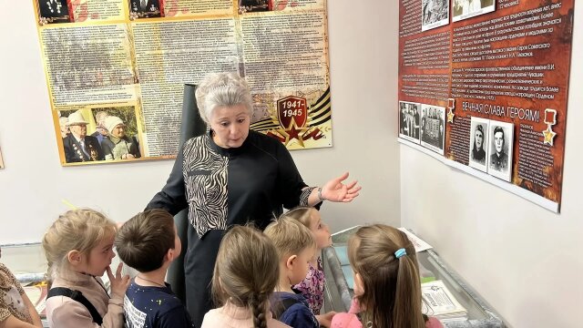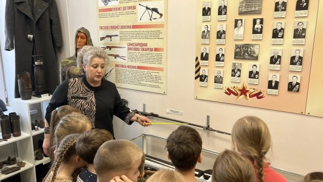 Дошколята посетили интереснейшую экскурсию в школьном музее воинской доблести и славы "Великие вехи". На экскурсии детям рассказали об основных событиях Великой Отечественной войны, показали личные вещи солдат и оружие времен войны, осколки, патроны и гильзы. Особое внимание ребят привлёк пистолет-пулемёт Шпагина.
