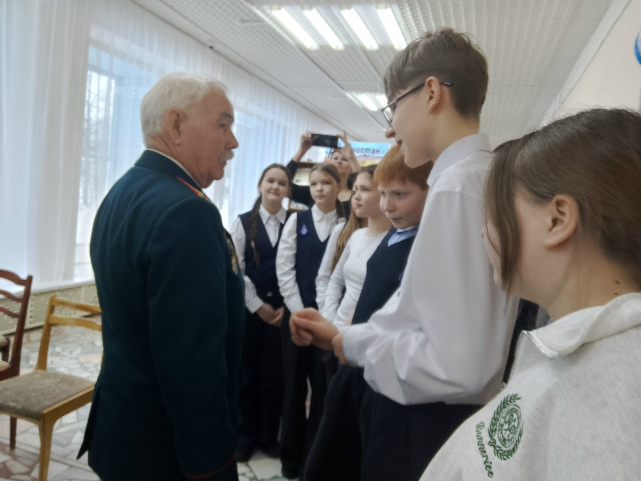 🪖 После рассказов ветеранов возник активный диалог: ребята задавали вопросы, проявляя интерес и уважение к их опыту. Это общение стало не только познавательным, но и эмоционально насыщенным, ведь у молодежи появилась возможность пообщаться с людьми, прошедшими через суровые испытания и сохранившими в себе дух и любовь к Родине.