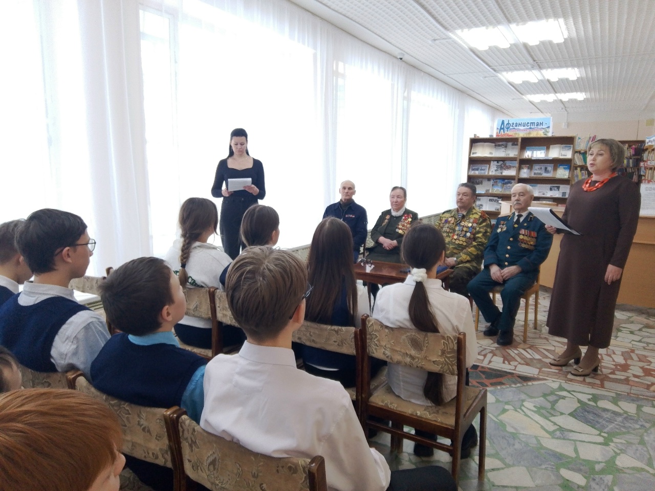 11 февраля в библиотеке им. В. Чапаева состоялась важная и значимая встреча для учеников 7 В класса с ветеранами афганской войны. Это мероприятие позволило ребятам не только узнать о военной службе, но и понять всю тяжесть и сложность тех времен, когда наши солдаты выполняли свой долг в условиях жестоких боевых действий .