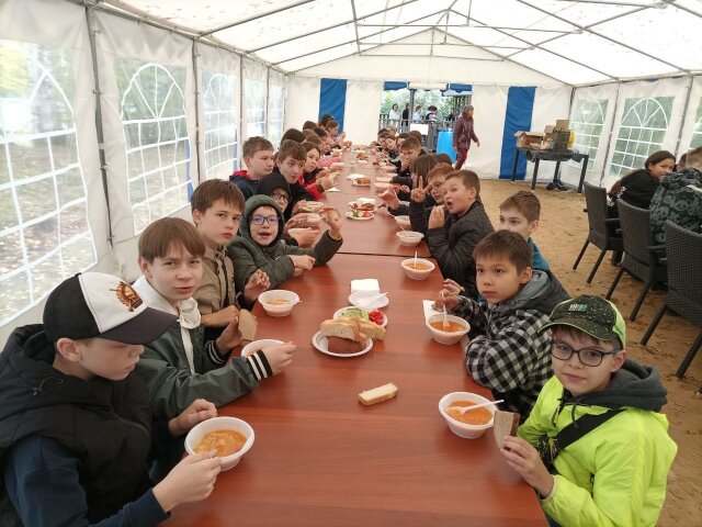 Завершилась встреча обедом, приготовленным на костре: куриный суп и гречка с тушенкой, вкуснейший чай из иван-чая.
